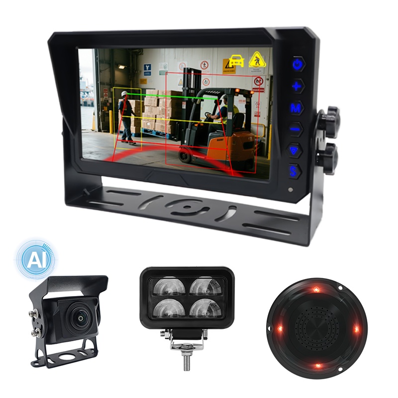 AI Dodehoekdetectie Achteruitrijcamera Ingebouwd geluids- en lichtalarmAutoleider AI voetgangers- en voertuigdetectie laserlichtwaarschuwingscamerasysteem voor vorkheftrucks, een AI BSD-camerasysteem dat werkt voor vorkheftrucks, uitgerust met een U-vormig laserwaarschuwingslicht en een geluids- en lichtalarm, waardoor betere prestaties kunnen worden bereikt bij het waarschuwen van omringende voetgangers en voertuigen om een afstand van de werkende vorkheftruck te verlaten. Dit systeem ondersteunt de AI-dodehoekdetectiefunctie en kan voetgangers en voertuigen detecteren. Ingebouwd AI-kalibratiemenu om de detectiezone aan te passen, voetgangersdetectie aan/uit, voertuigdetectie aan/uit, enz. Een geavanceerde oplossing om de veiligheid van vorkheftrucks te verbeteren.