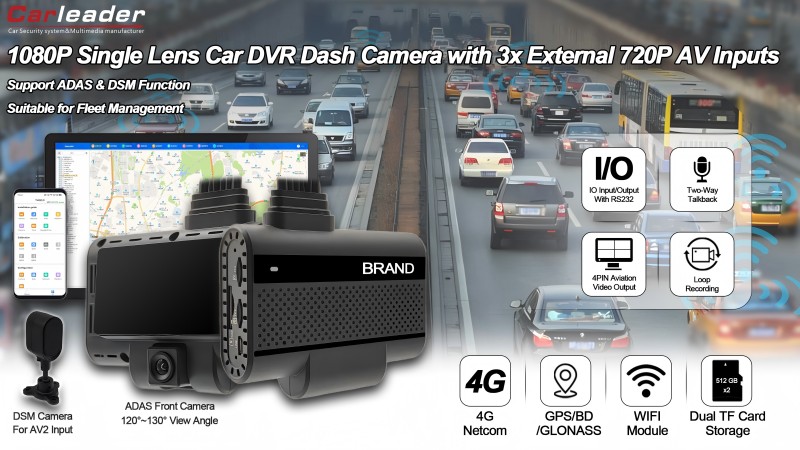 Autoleider4CH AI-aangedreven ADAS+DSM dashcamera ondersteunt video-uitvoeris een krachtige DVR-camera met één lens, ontworpen voor moderne voertuigveiligheids- en bewakingsbehoeften. Dit apparaat is uitgerust met geavanceerde rijhulpsystemen (ADAS) en driver status monitoring (DSM) en biedt uitgebreide beveiliging en realtime waarschuwingen om de rijveiligheid te verbeteren.